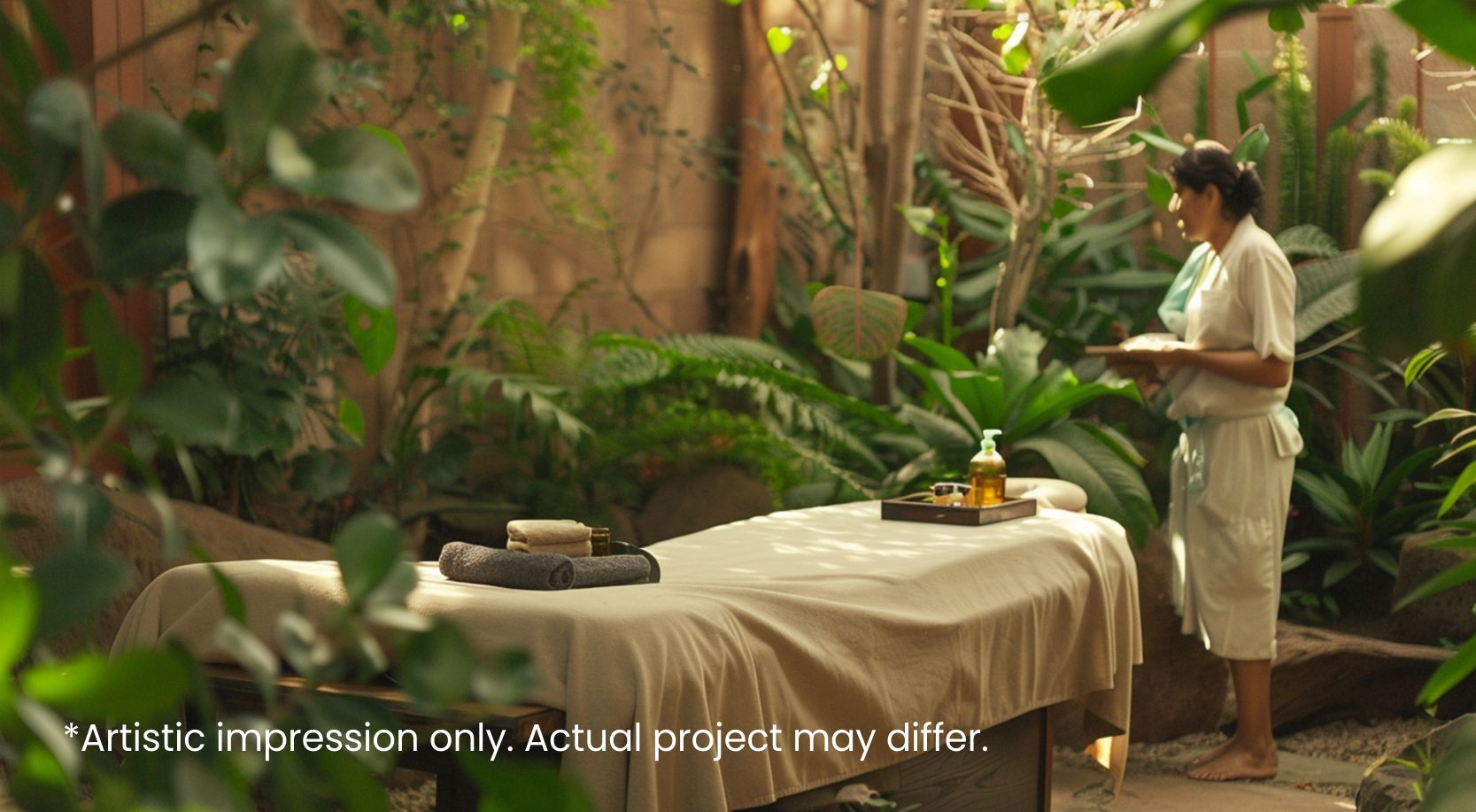 Lush pathways surrounded by medicinal herbs and oxygen-rich plantations. Designed to refresh your lungs, mind, and overall well-being.